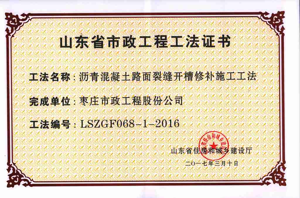 近日,從山東省住房和城鄉(xiāng)建設廳傳來喜訊,我公司申報的《瀝青混凝土路面裂縫開槽修補施工工法》和《人行道方形井座的施工工法》,經(jīng)山東省住房和城鄉(xiāng)建設廳工法評審委員會專家審核評審,順利獲批山東省省級工法。