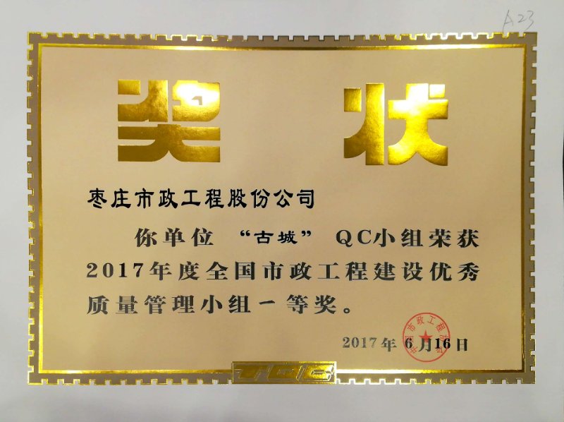 6月21日,2017年全國(guó)市政工程建設(shè)質(zhì)量管理小組成果發(fā)布會(huì)在四川成都召開(kāi)。此次參加現(xiàn)場(chǎng)發(fā)布的共有289項(xiàng)。我公司 “創(chuàng)新手工雕琢式欄桿施工工藝”(聚力)QC小組和“研發(fā)直埋管道內(nèi)電纜防盜的新型施工工藝”(古城)QC小組,同時(shí)榮獲2017年度全國(guó)市政工程建設(shè)優(yōu)秀質(zhì)量管理小組一等獎(jiǎng)。是我公司開(kāi)展QC小組活動(dòng)以來(lái),取得成績(jī)最好的一次。